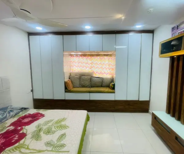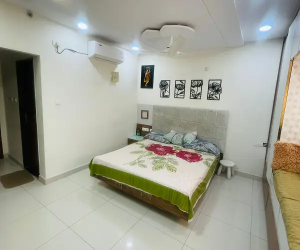 • The images showcase elegantly designed bedrooms with contemporary aesthetics, tiled flooring, built-in storage/wardrobes, and ample lighting.